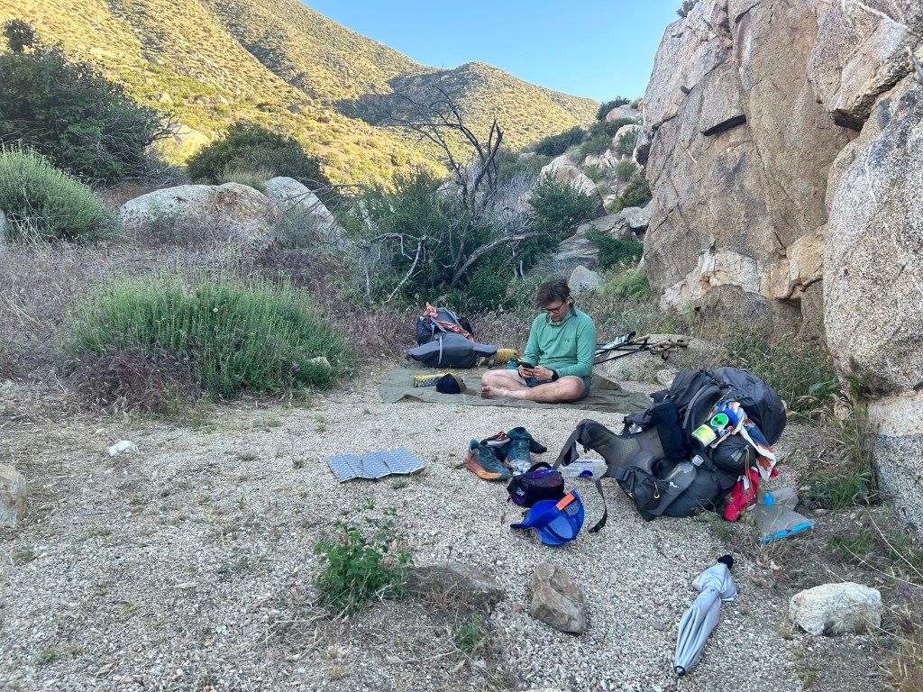 Two other gents strolled into camp about an hour later and we got along great. They are John and Clay, slightly older than me, and well experienced hikers. John is going for the full trail, while Clay is just doing sections. More on them in the next post. We got to bed early and prepared for a 7am leave time for the 6.4 miles to Paradise Valley Cafe the next morning.
